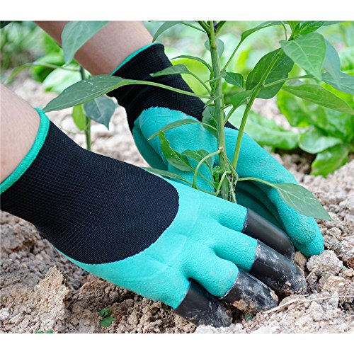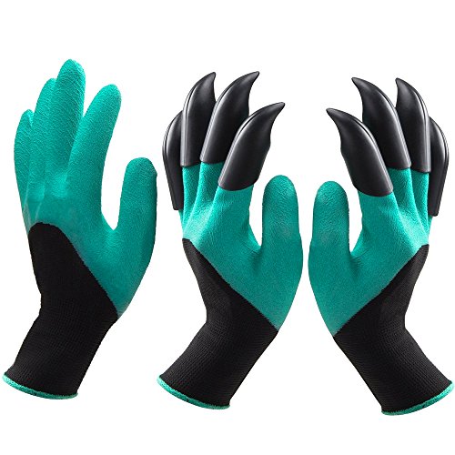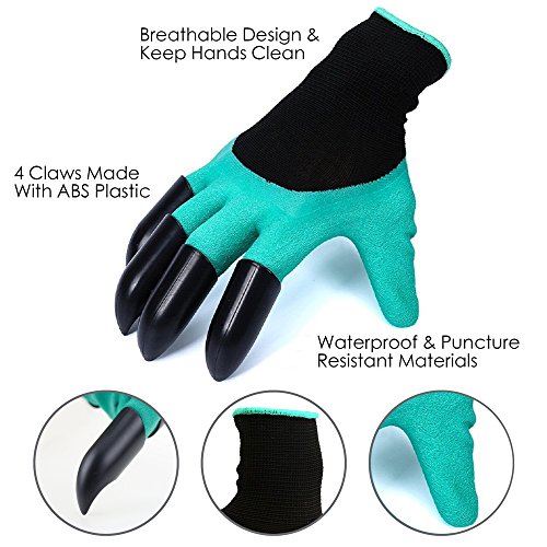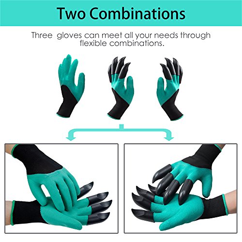 Garden Genie Gloves-Frmarch 3 pack Genie Gloves With Claws for Digging and Planting (Green)