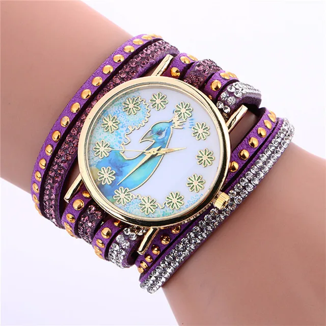 | [해외] Relogio feminino 여성 팔찌 시계 공작 패턴 종소리 석영 가죽 손목 시계 여성 드레스 시계 시계 Reloj Mujer |