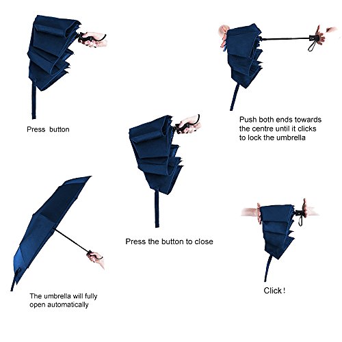 - Press the button to open,The umbrella will open automatically. - Press again, the umbrella will close automatically,Push both ends of the umbrella towards the center until it clicks