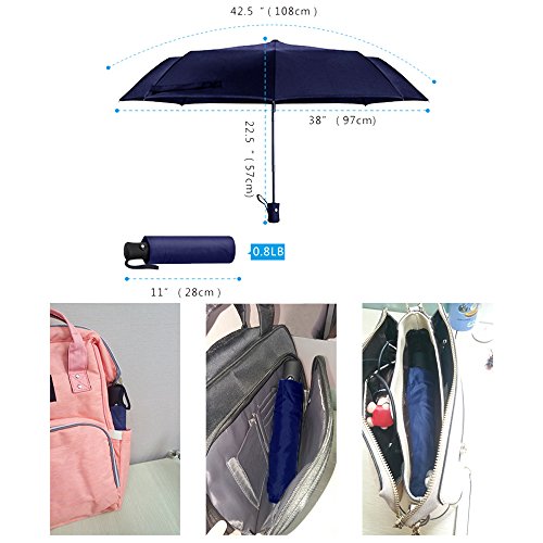 This travel umbrella is quick drying and easy to keep clean,rubberized handle is comfortable to hold, and classical dark blue style is perfect companion for both men and women.?