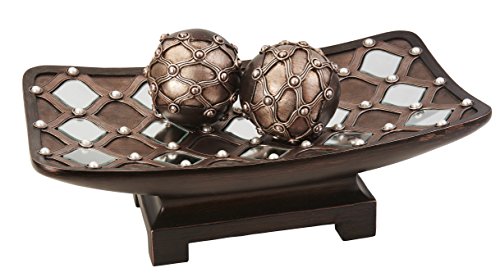 - The decorative bowls features archaic patterns of the arabesque between Bronze and gold lacquer finished (engraving bowl dimension is 9.25L x 6W x 2H; sphere diameter is 4Dia)