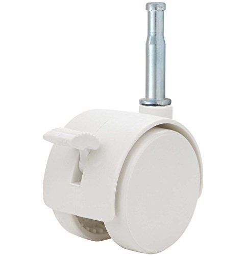 Twin Wheel Caster Solutions TWHN-50N-G02-WH-B 2" Diameter Nylon Wheel Hooded Brake Caster, 5/16" x 1-1/2" Grip Neck Stem, 110 lb Capacity Range
