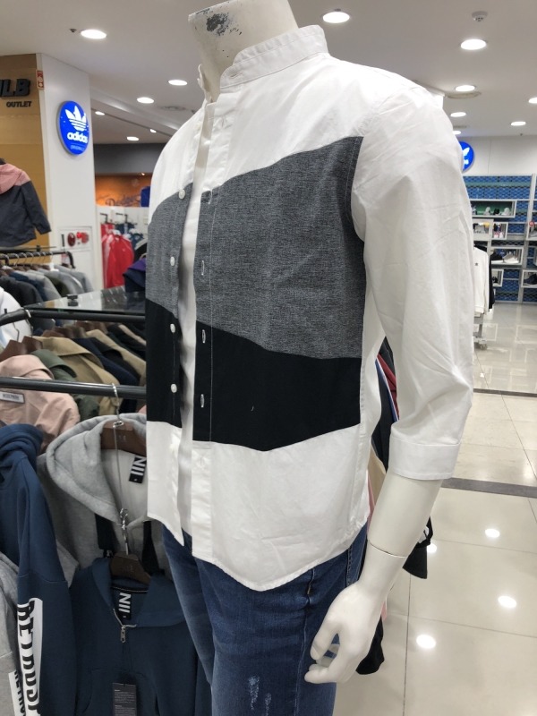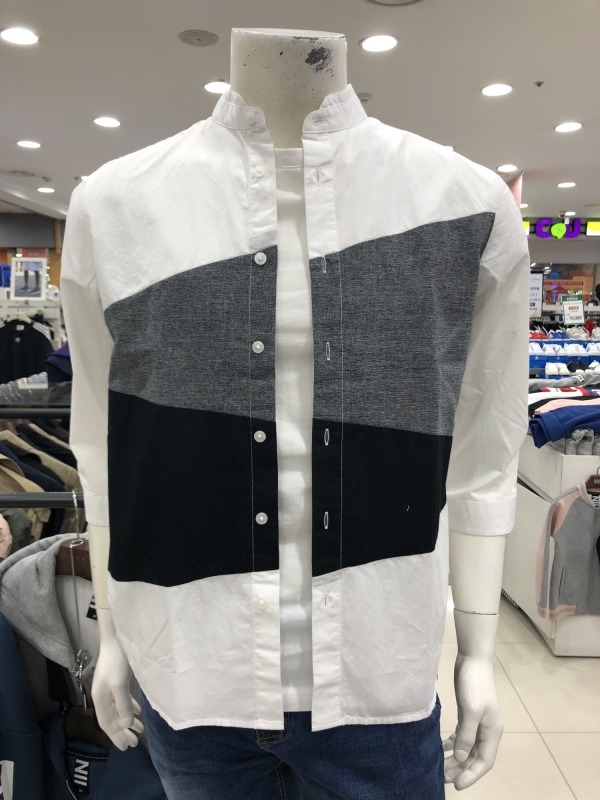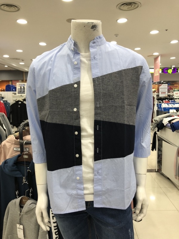 남성) 컬러블럭 칠부 셔츠