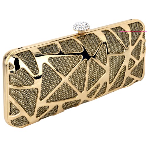 This glitzy metallic frosting metal-like box clutch is easy to add some extra sparkle to your special night when you accessorize with it. Exotic shiny cutwork abstract design against glitter frosting background shows off your unique and fashionable sense of style. For even more sparkle, the top Rhinestones clasp is encrusted on this hard case purse. Rectangular, structured clutch is just the right size to hold small essentials - like lipstick, keys, or your ID - without getting in the way. Carry this extraordinary baguette by hand, or utilize the detachable chain strap as a shoulder bag. Make the designer inspired handbag a great addition to just about any outfit, this stunning evening bag will be the highlight of your ensemble.*Due to monitor variations colors may appear slightly different.*