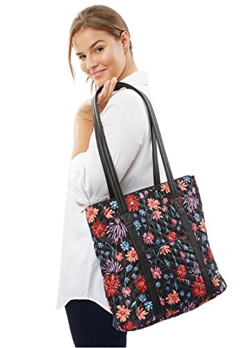 Studio : Woman Within Publisher : Woman Within Product Description This go-everywhere, do-everything tote is patterned with a bright floral pattern for a fun pop of color. An exterior slip pocket is perfect for easy access to necessitieslike your phone and keyswhile a zip-top closure keeps everything stowed safely. 11.5" W X 11.25" H X 4.5" D X 14" strap drop Cotton, Imported 0