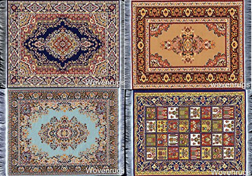 Studio : WovenRugs Publisher : WovenRugs Binding : Toy Product Description Oriental rugs have been famous for centuries. Now you have the opportunity to add miniature versions of these beautiful designs to your dollhouse. You will receive the four (4) rugs that are pictured. Product Details - Each carpet consists of a 100% authentic woven rug - White fringes on both ends! - Bright colors that do not fade - Carpet is washable - Detailed design of authentic Turkish/Oriental Rugs - Size including fringes: approx. 6" x 4" (15cm x 10cm) 0
