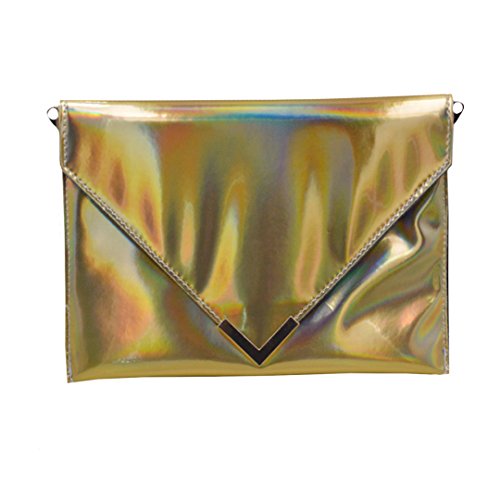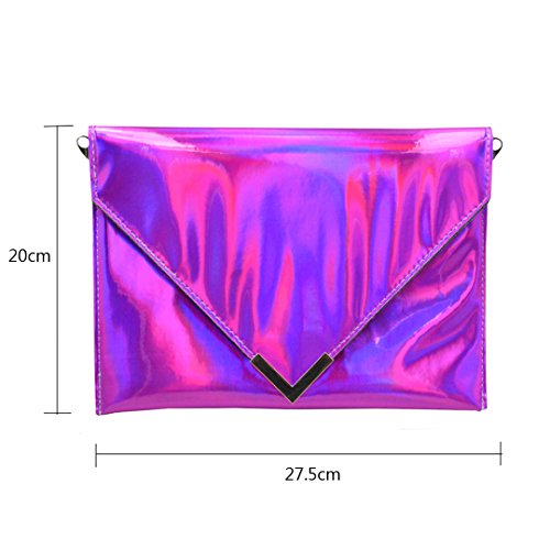 -. Title : Mily Womens Holographic Laser Leather Envelope Clutch Handbag