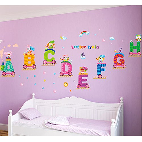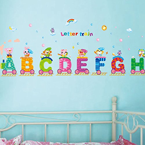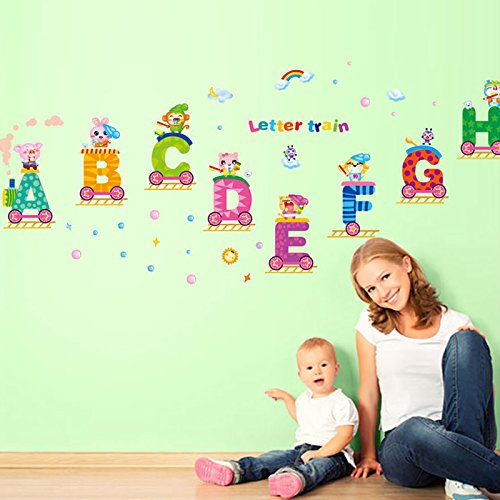 -. Title : English Alphabets Train Rainbow Sun Wall Decal PVC Home Sticker House Vinyl Paper Decoration WallPaper Living Room Bedroom Kitchen Art Picture DIY Murals Girls Boys kids Nursery Baby Playroom Decor