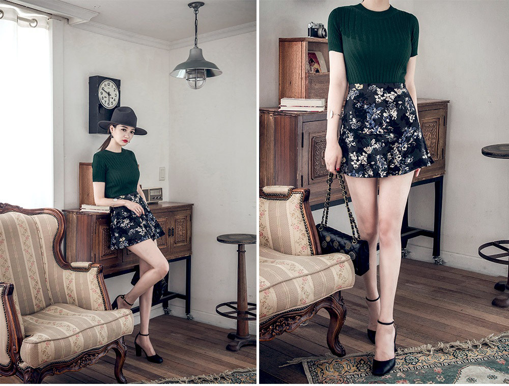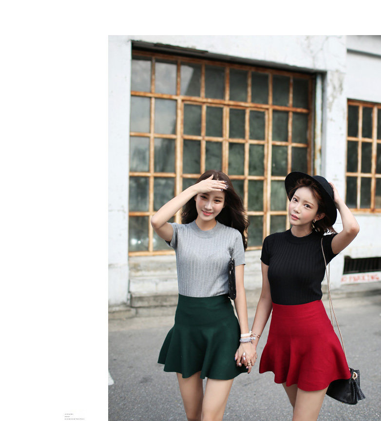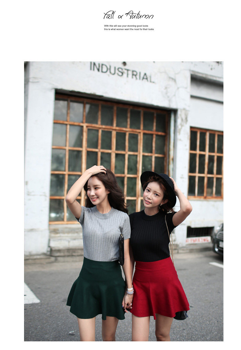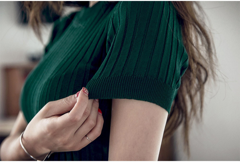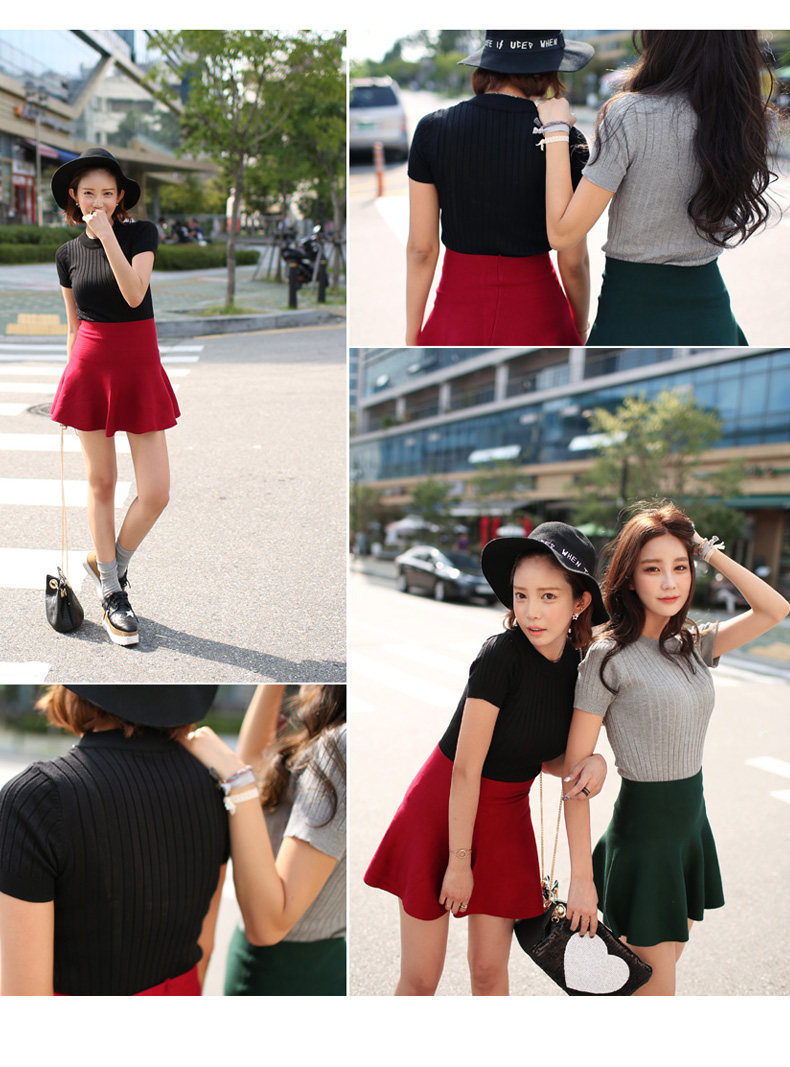 SHORT SLEEVE KNITTED TURTLE NECK TEE