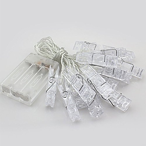 THIS IS MORE THAN YOUR REGULAR LIGHT STRING: Unlike other fairy lights, this LED string lights that emit warm white light is multi-functional in design. Every mini light bulb has a clear plastic clip that lets you hang adorable photos, art works, miniature decorations or even memos. With 20 mini LED bullets and clips in a long wire cable.