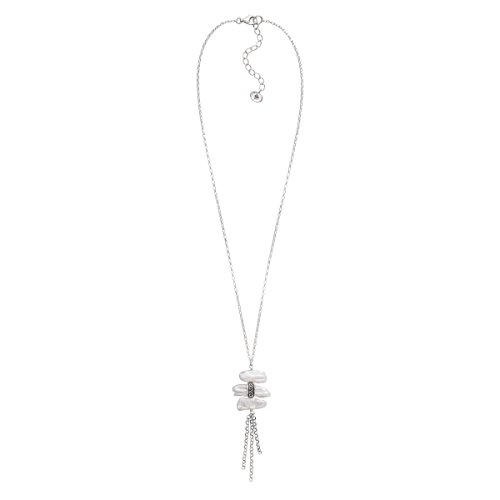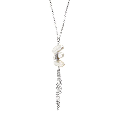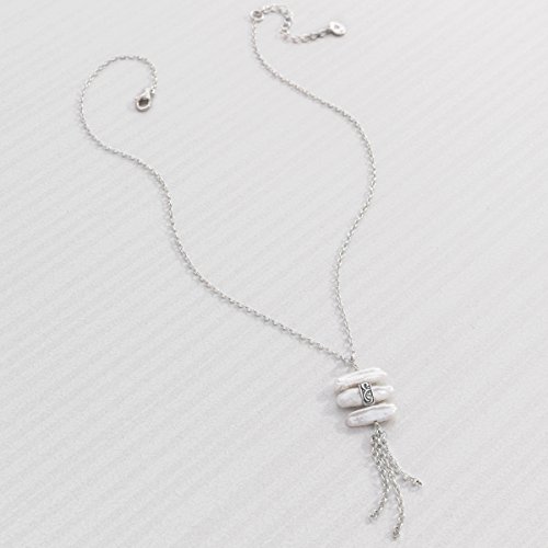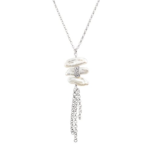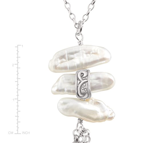 The stunning Organic Trio Necklace features three stacked, organic pearls totaling 14 ct and sterling silver fringe pieces, perfect for layering with lengthier strands and pairing with your favorite LBD or scoop-neck top. The rolo-style chain measures 20 inches in length (with a 2-inch extender), finished with a lobster clasp. Piece comes with a ".925" sterling silver stamp as a symbol of guaranteed product quality.