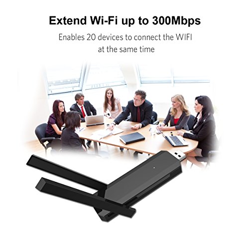 Extend WIFI up to 300Mbps;portable USB plug design;easy to set up;work with standard router or gateway;dual external antennas for better performance.