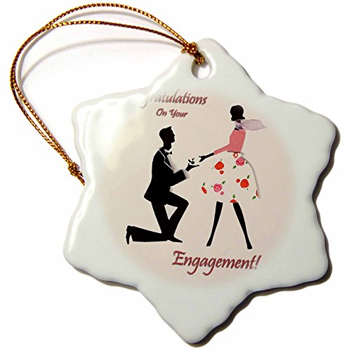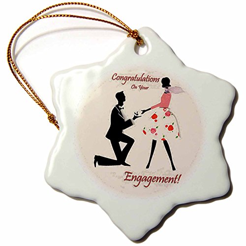 3drose Congratulations on You Engagement Snowflake Porcelain Ornament, 3-Inch