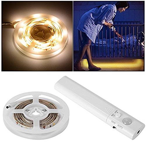 Alotm LED Dual Mode Motion Activated Bed Light, 1M Flexible LED Strip Night Light Illumination with Automatic Shut Off Timer Sensor, Bed Light,Stair Light(4 AAA Batteries Operated, Not Included)