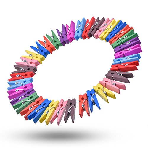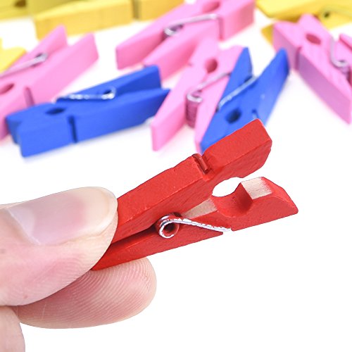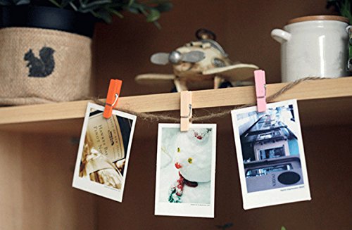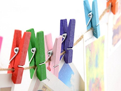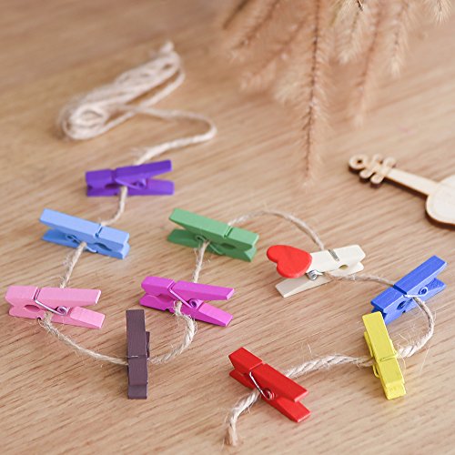Antner Wooden Photo Paper Peg Pin Clothespins Craft Clips with Jute Twines, 110 Pieces, Assorted Colors