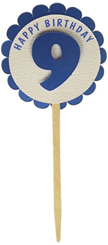 All About Details Shimmer Blue 9th Birthday Cupcake Toppers, Set of 12