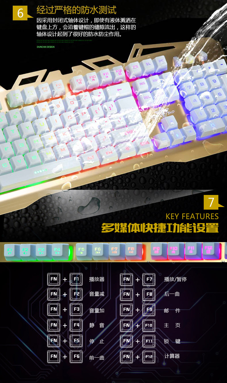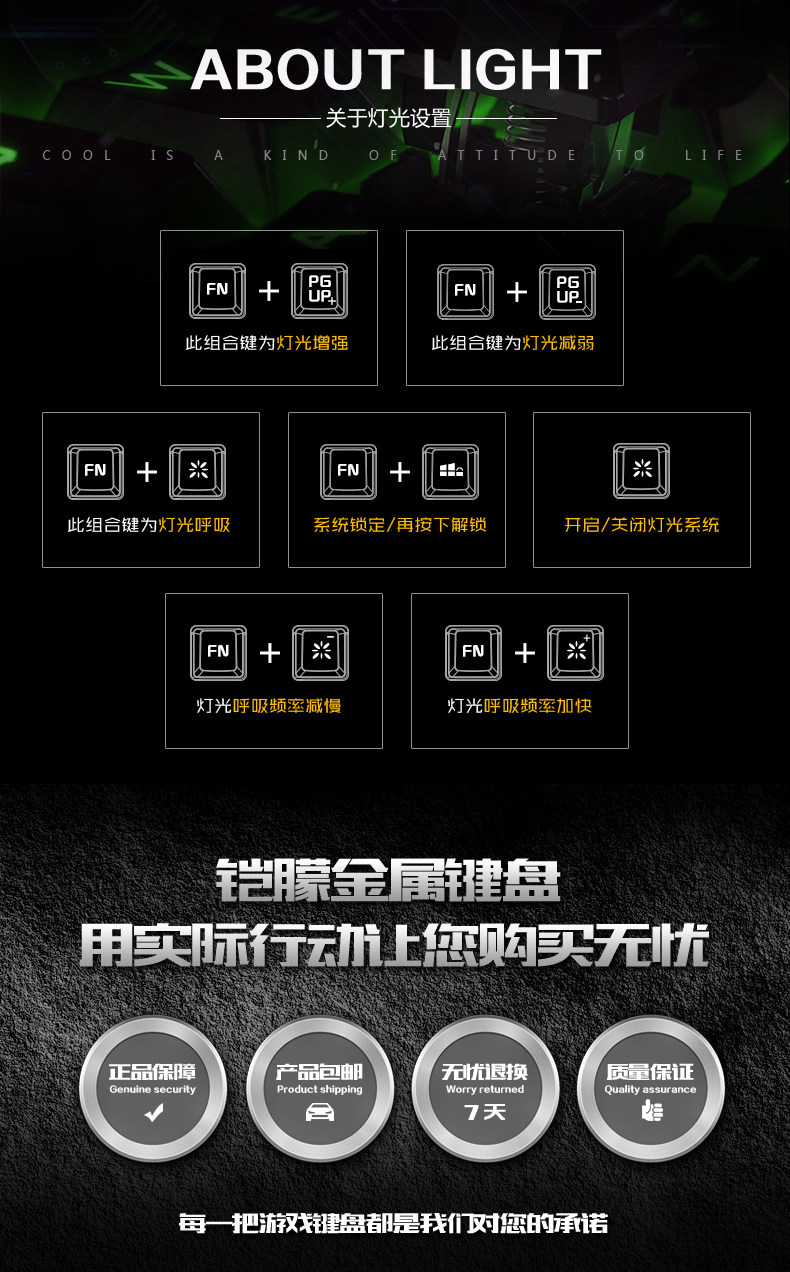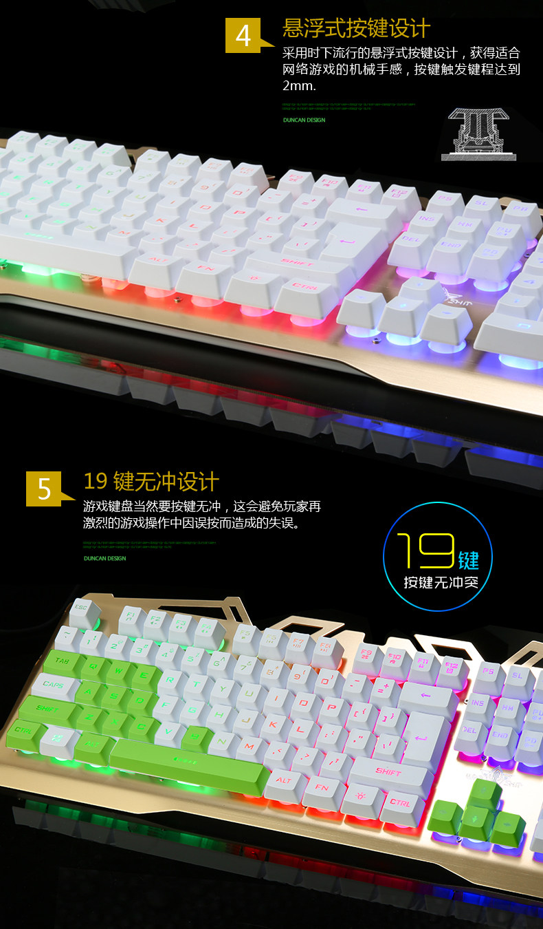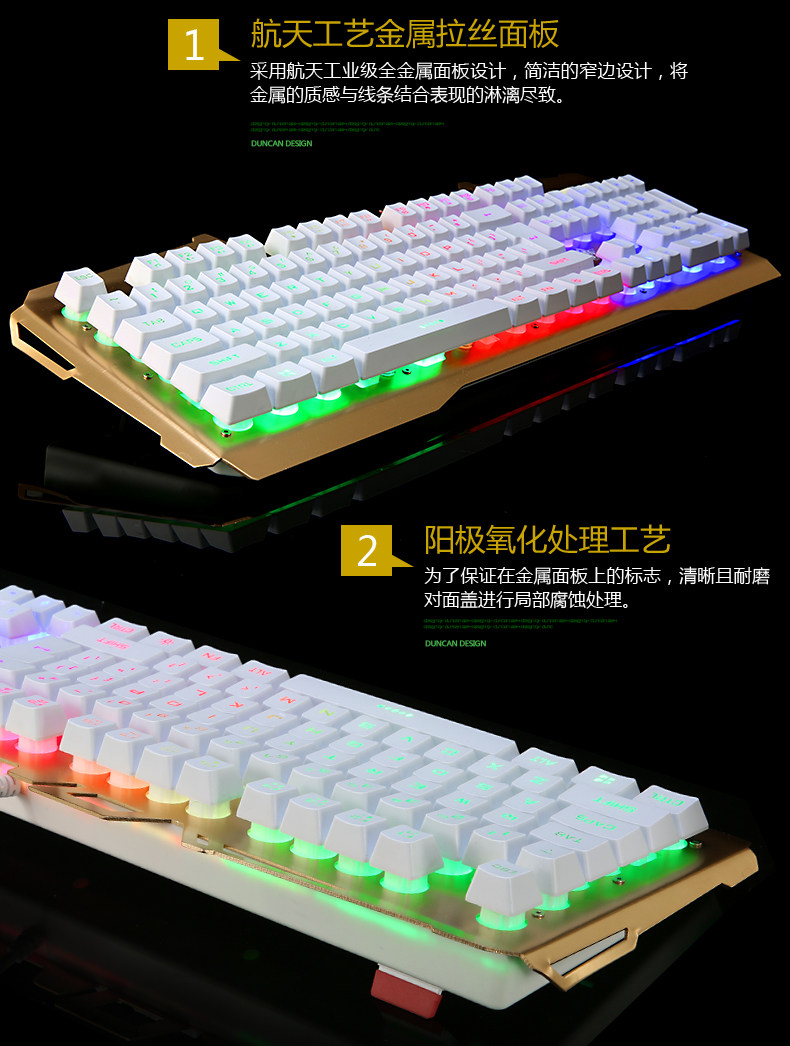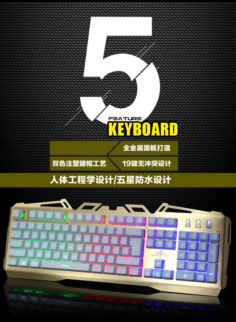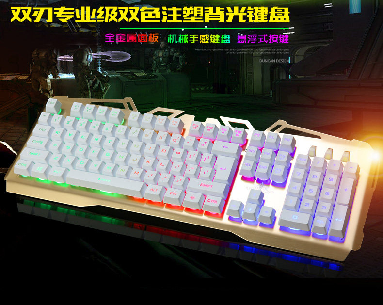 KaIMEnG双刃金属背发光usb有线游戏键盘机械手感笔记本电脑家用cf