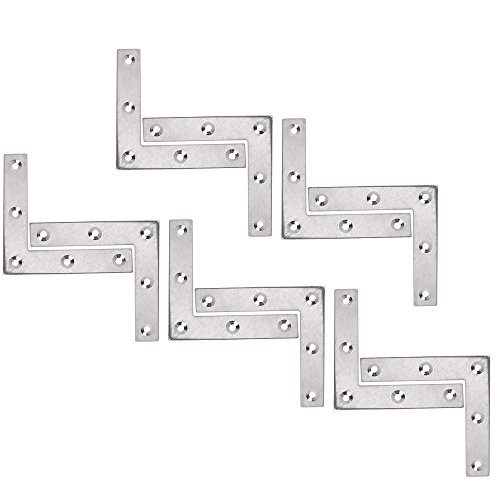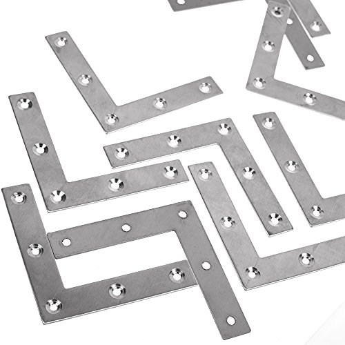 BCP 10pcs Stainless Steel Furniture 80mmx80mm L Shape Flat Plate Corner Brace Bracket