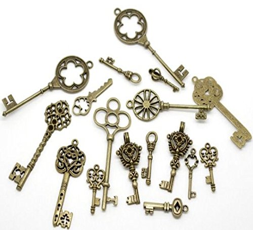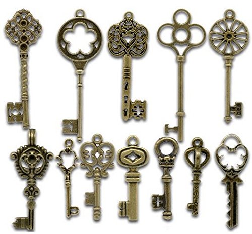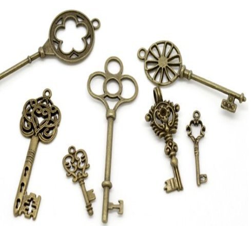 24 Pc Antiqued Brone Skeleton Keys (2x Pictured) - Findings, DIY Crafts, Jewelry Making, Steampunk & Charms