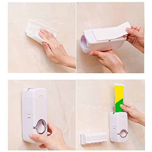 ❖ MORE STURDY: More stably for automatic toothpaste dispenser to wall mount on the wall with double-sided adhesive.(should give 24-48 hours for the glue to set before you put the toothpaste in)