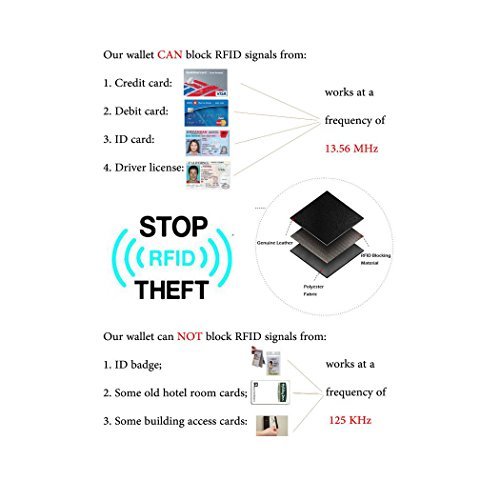 -. Feature : Made with premium quality synthetic leather and RFID blocking material / Measurements:4.33" x 3.15" x 0.8" - 9 x Card Slots,2 x ID Window,1 x Bills Bits,3 x Dark Cell and 1 x Change Position / Protect yourself from the crimes you can't see! Get the best shielding,from the original provider of RFID Shielded Wallets. / Stores your carry-on essentials such as money, id cards and credit cards in one slim and lightweight wallet and never miss or lost them. / Wonderful gift for you and your friends; Gift Box Included!