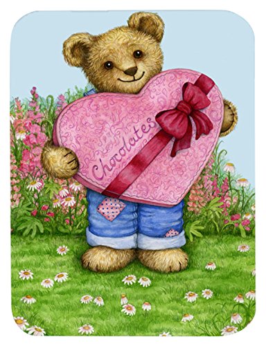 Caroline's Treasures CDCO318ALCB "Valentine Teddy Bear with Chocolates" Glass Cutting Board, Large, Multicolor
