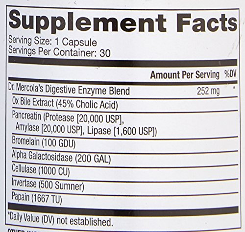 Dr Mercola Digestive Enzymes - 30 Capsules - Natural Digestive Enzymes With Enhanced Formula - Premium Dietary Supplement