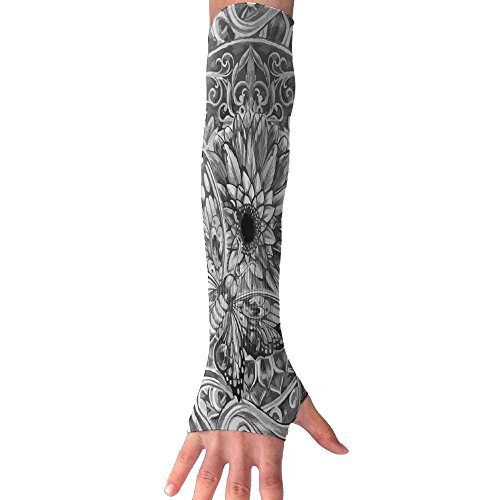 Suining Unisex Drawing Floral Tattoo Pattern Sunscreen Outdoor Sports Arm Warmer Long Sleeves Glove