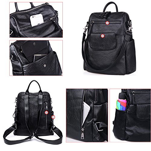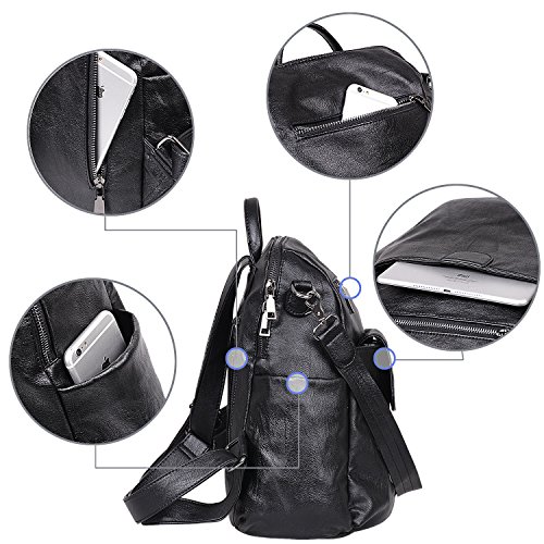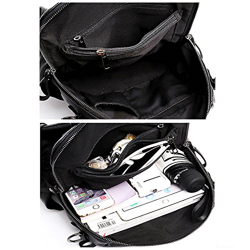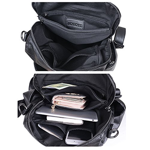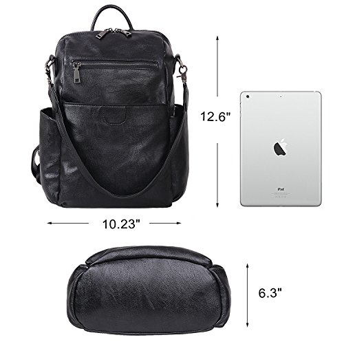 Compartment Style: Interior:2*zipper pockets, 2*item slots, 1*main compartment; Exterior: 1* backside zipper pocket, 2*item slots on both sides of bag, 1*zip pocket for coins and 1*magnetic flap bag in the front of backpack. Plenty of divided compartments make it easier to organize.Sufficient space, would comfortably tote around several folders, cosmetics bag, notebooks, laptop(iPad Pro) etc. Perfectly used as backpack or shoulder bag for school, working,dating or even travelling around, it's a lovely gift for ladies.