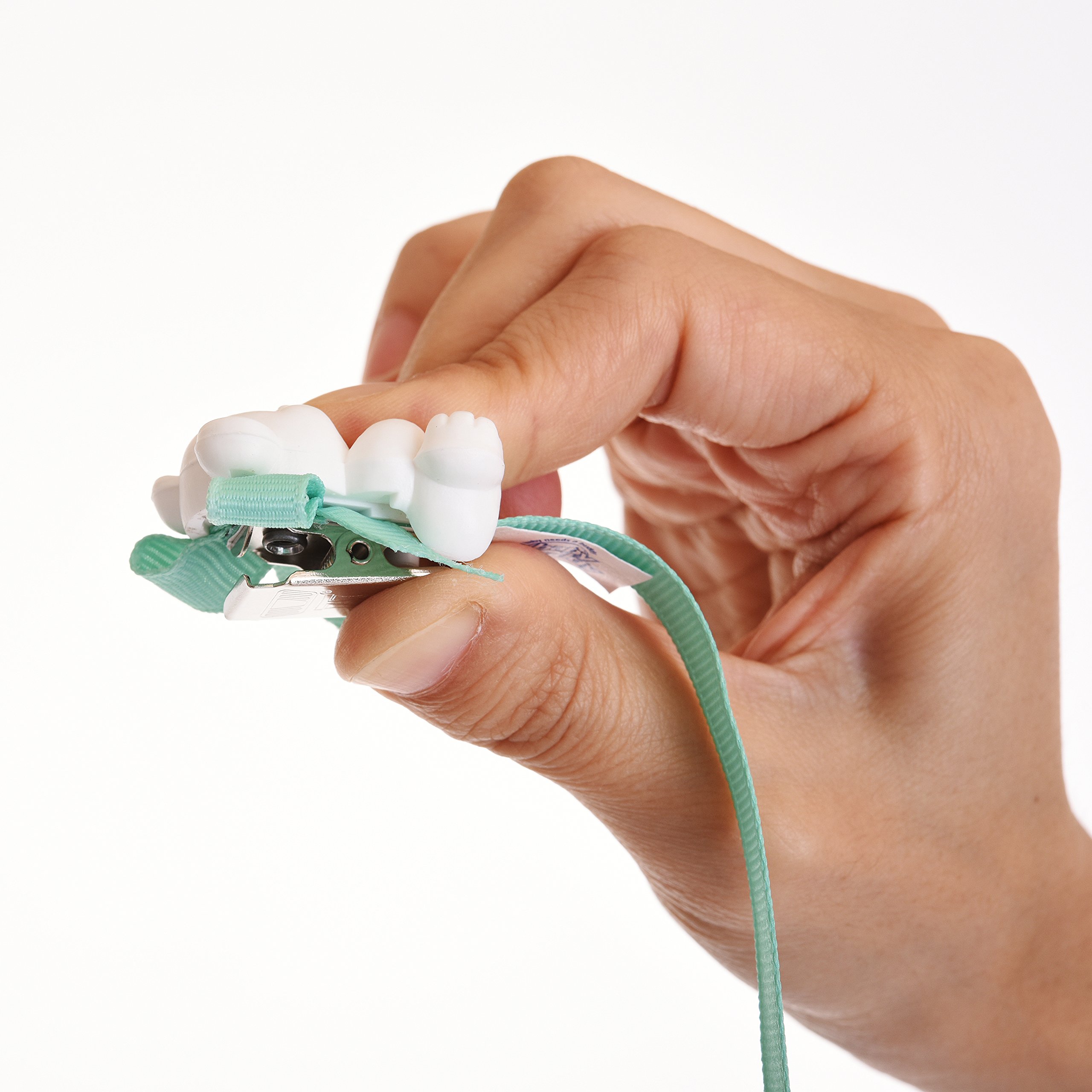 1. Squeeze the end of the handkerchief with a clip of a bear.