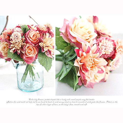 Yzakka Artificial Dahlias Wedding Bridal Bouquet 10 Heads Arrangement Floral Centerpieces Home Garden Office Decoration Sunset