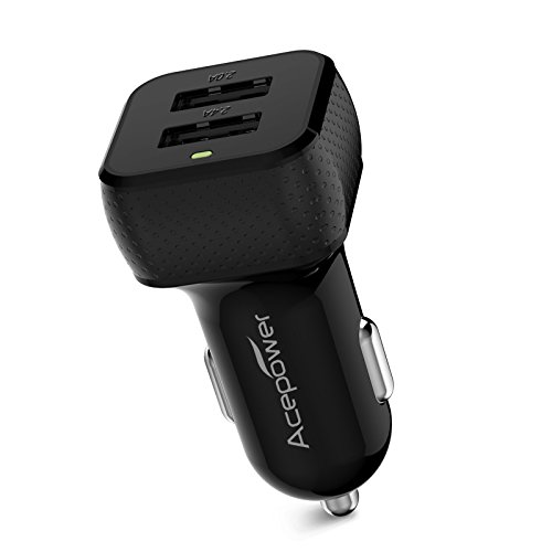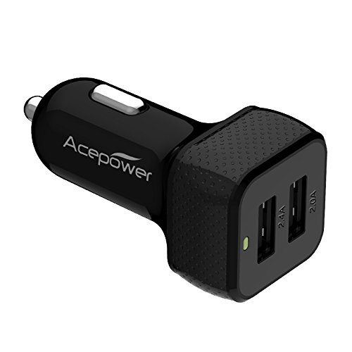 - Feature : The ACEPower Mini Dual USB Universal Car Charger allows you to charge Smartphones, tablets, music players, and electronic devices on the trip, MFI(Made for iPhone iPad iPod)Approved, optimal performance on all Apple product,cable is not included / Double injected frame consists of a polycarbonate inner layer coupled with the flexible external molding of TPU (thermoplastic polyurethane) for a soft grip / Both USB ports(2.4A and 2.0A)offers rapidly charging of smartphones, tablets, and other devices. For All Apple Products optimal recommend to use 2.4A port, Smart charge at maximum speed limited by devices or USB ports, automatically stops when the device battery is full. A Soft Internal LED power indicator is lit to show that car charger is ready for use or is charging. / Compact design for added portability, featuring of input:12-24V; Output: DC 5V 4.4A or 22W (Shared by two ports) / Safely protect devices and charger from overheated. LED only light up when charger in good working condition, automatically stops working when over current or over voltage is detected, switch to minimal charging current when battery is full. With the high charging efficiency of over 85%, the charger itself never get hot. High quality fire proof material. No radio loss in your car or effect to Bluetooth or Wi-Fi devices.