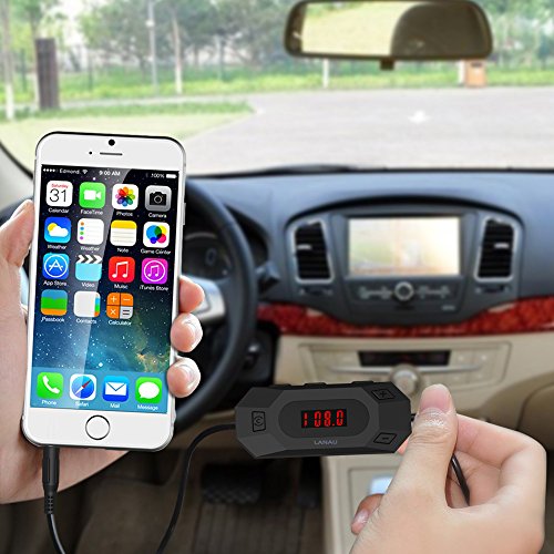 LANAU Bluetooth FM Transmitter Car Kit with Dual USB, In-car Charger, Handsfree, Hi-fi Stereo Wireless Bluetooth Radio Adapter with 3.5mm Audio Plug Compatible with all Audio Devices (Black)