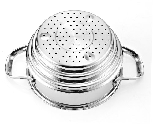 Cooks standard mulitclad stainless cookware features air-flow technology makes handle stay cooler than normal handle type. Constructed of clad metal of 3 layer: Interior lining is premium grade 18-10 stainless steel, core made of multi-element alloy aluminum for superior heat distribution, the core of aluminum goes from bottom all the way to side wall, stainless steel does not transmit heat quickly but aluminum does. Aluminum is soft and dents easily, stainless steel is hard and strong. This means you get the toughness of stainless steel with the even heat distribution of aluminum. Exterior is scratch resistant brushed treatment, bottom is also compatible to conduction stovetop, this cookware is dishwasher safe.Feature