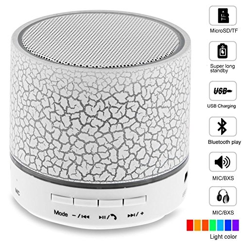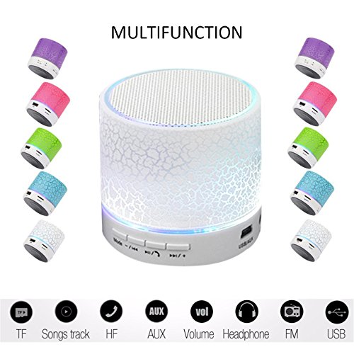 Lonchan Mini Bluetooth Speaker,Wireless Portable Sound Box Subwoofer Speaker with Mic & Colorful LED Light,Support USB/AUX/TF Card/FM Music,White