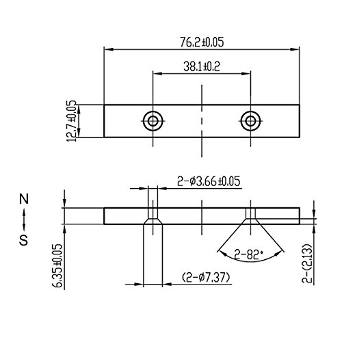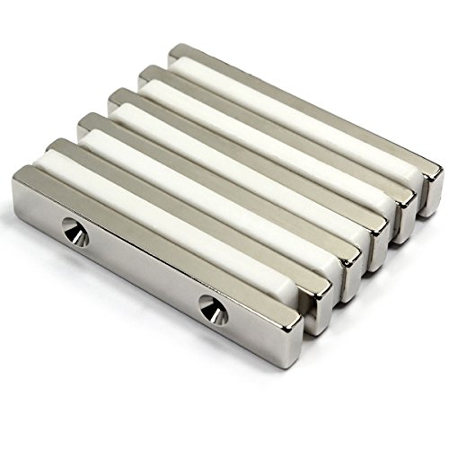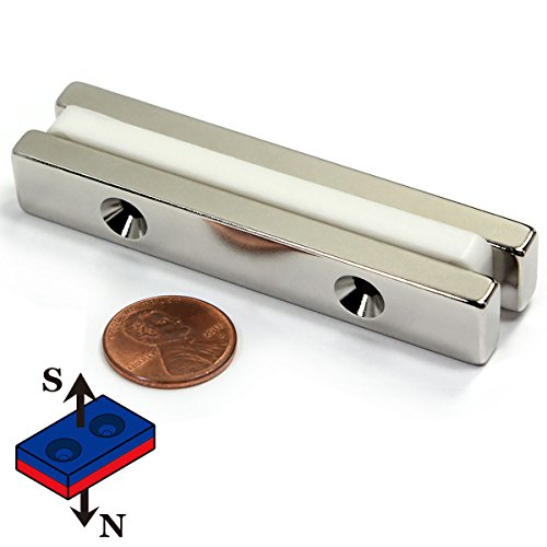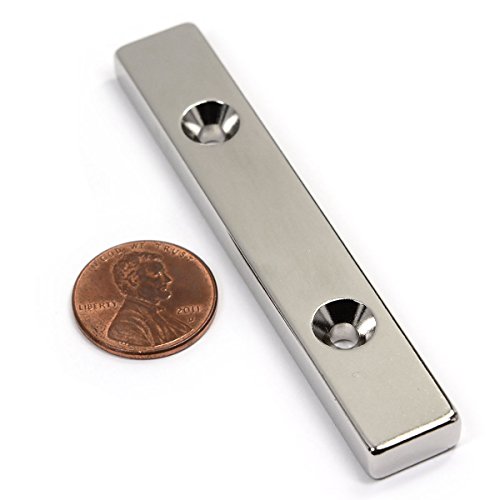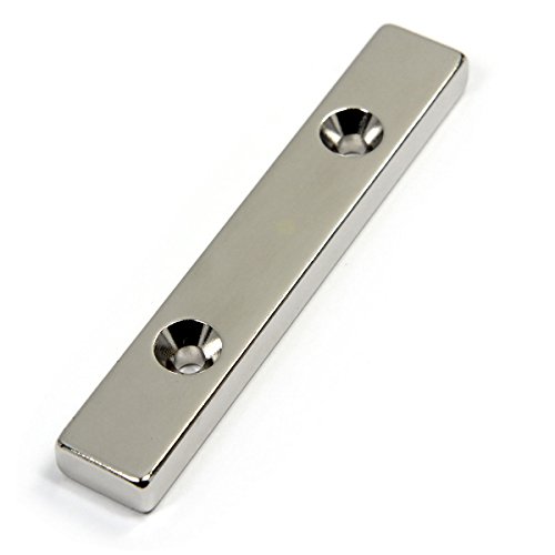 CMS Magnetics Grade N45 Rectangular Bar Neodymium Magnets 1/4x1/2x3 Inches, South Pole with 2 #6 Counter Sunk Holes – Pack of 2
