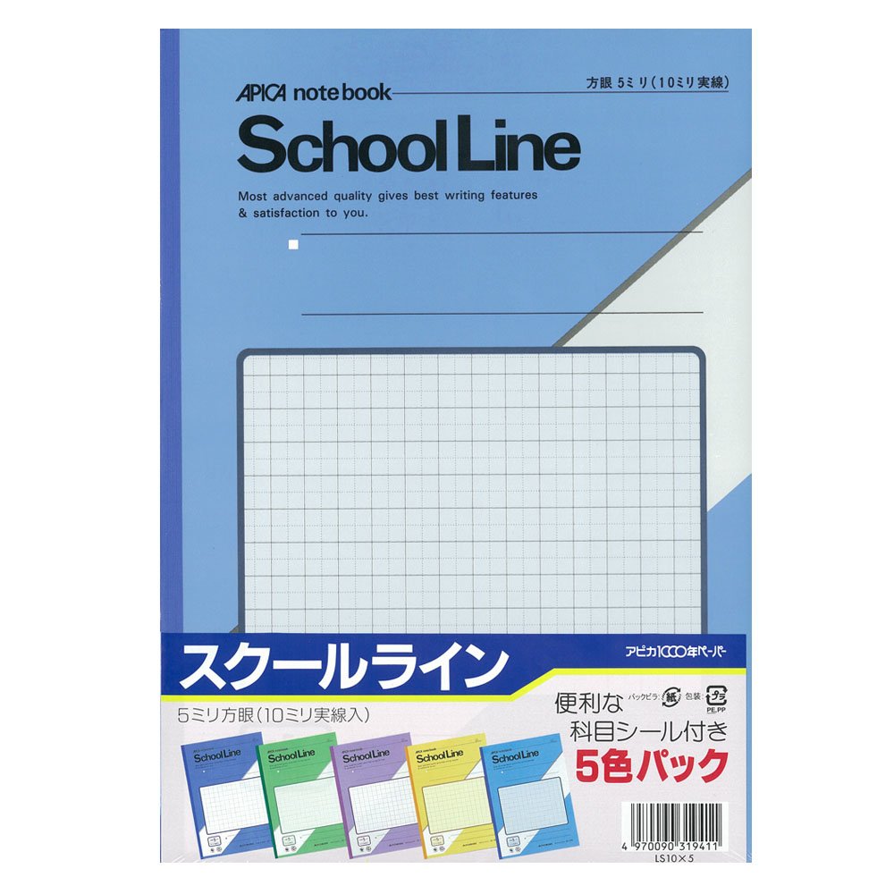 Apika learning book School line LS10X5 semi B5 5mm grid ruled five-color set