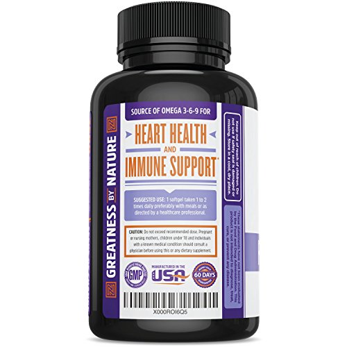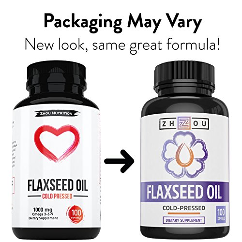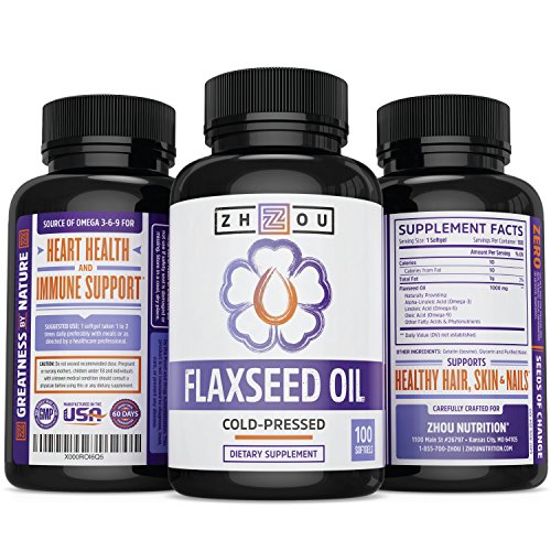 Flaxseed Oil Softgels To Support Heart Health and Healthy Hair, Skin & Nails - Cold-Pressed - Essential Omega 3 6 9 Fatty Acids - 1000 mg per serving,...