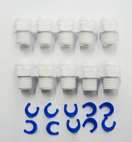 1/4" x 1/4" (Tubing OD x Thread) NPT Male Connector Straight Adaptor Quick Connect RO DI Drinking Water, set of 10