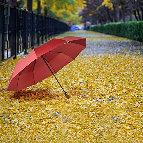 -. Feature : SUPER WINDPROOF - Reinforced fiberglass 10 Ribs design, this windproof umbrella is much more durable and more strong even in the toughest stormy days. / PORTABLE & LIGHTWEIGHT - Only 13 inches folded size for schoolbag/briefcase/backpack carry, but large enough for 3 people cover. Classic black color is suitable for men/women/children in daily life or travel. / AUTOMATIC & ANTI-SLIP - The umbrella can be opened and be closed automatically by pressing button on handle. The UV coating wooden handle offers you more comfortable, anti-slip hold feeling. / QUALITY MATERIALS: Stainless steel shaft and ribs, durable waterproof 210T pongee polyester canopy,which supports highly water repellent and quick dry. / WHAT YOU GET - Blueshadow folding umbrella x 1, Nice Gift Box x 1, umbrella leather case x 1, 30-day money-back & 12-month worry-free guarantee if the product has any quality defect. Any problem, we will reply you within 24 hours