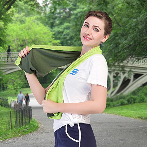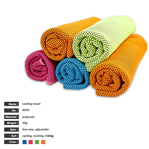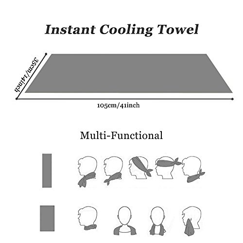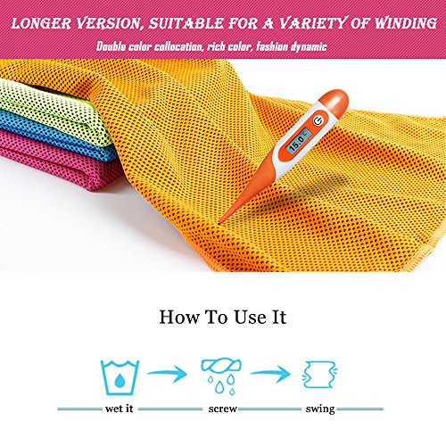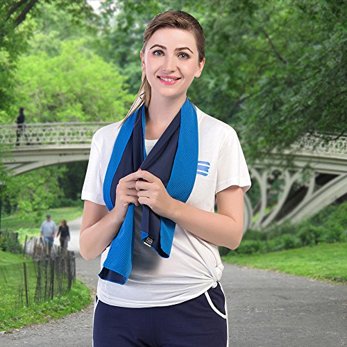 -. Feature : EXTRA LONG & MULTIPURPOSE SPORTS TOWEL, 41" long by 14" wide. It is easy to tie if you will be moving around a lot. Works like a charm as golf club head cover, cooling bandana or neck wrap. Longer inches make the towel perfect for athletes, runners, sports fans into workout, gym and fitness, females suffering with side effects of heat stress, hot flashes; patients who need cold therapy after operations, surgeries; gardeners doing yard work, mowing the lawn and workers working out in summer heat / CHILLS INSTANTLY, Hyper-evaporative breathable mesh material makes it easy to activate the chilling towel when you simply soak, wring out and snap it. Re-wet to reactivate it. Unlike PVA material that drys to cardboard, it is silky soft, pliable, easily folds up & fits into a gym bag. The towel stays chilled for up to 3 hours and it reduces body temperature up to 30 degrees. The soaked fabric is pleasant to touch, rather than annoyingly dripping wet. It also provides UPF 50 sunscreen protection / HOW IT WORKS? The super absorbent fiber weave technology of the mesh towel regulates the water inside and ensures water retention, so it's treating it kind of like an air-conditioner, and within seconds you get cold. Like sweat on you skin, when water evaporates it cools. Any ole cotton or microfiber towel would work, but not as well design to maximize evaporative cooling or comfort. If you are sweating a lot, rinse the 'salty water' out from time to time. Salt reduces evaporation/cooling rate / BONUS ANTI-BACTERIAL CARRYING POUCH WITH CARABINER CLIP, With the waterproof plastic case, it's easy to carry the chilly towel on a rock climb, golf trip, corssfit training, etc. The reusable pouch is friendly to earth and saves more space than a bottle. The storage case comes with carabiner clips of vibrant colors that match the towel, making it a great gift for all ages. The clip makes it convenient to attach the cooling towel to the belt of sports bag, camping hammock and traveling backpack / SATISFACTION GUARANTEED! This will be your best cooling towel ever. Amazon's guarantee is great, but ours is even better! We are so confident that you will love Alfamo Cooling Towels that we have a "Lifetime Money Back Guarantee". If at any time you aren't completely happy with your purchase, just let us know and we will refund you in full. Even if its 6 months from now! Enjoy our limited time offer sale right now! What are you waiting for, Click the ADD TO CART Button now