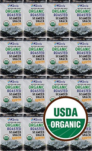 Kim's Premium Organic Seaweed (Nori) Snack 16 Pack. Roasted, Sea Salt, 100% USDA Certified, No MSG, Low Calorie