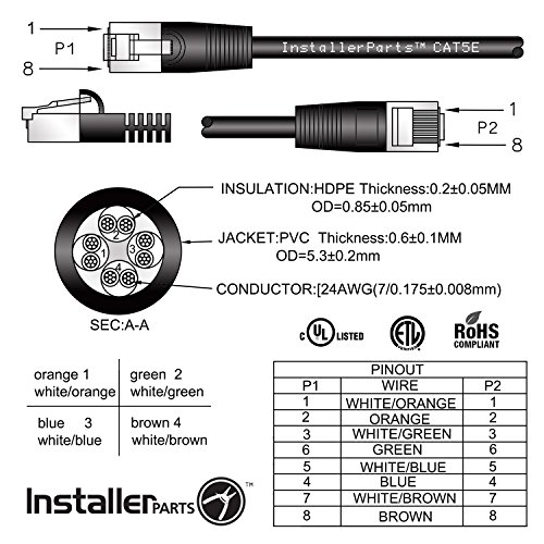 - MAXIMUM COMPATIBILITY: Meets or exceeds Category 5E performance in compliance with the TIA/EIA* T-568B standard wiring. UL/cUL Listed. RoHS.