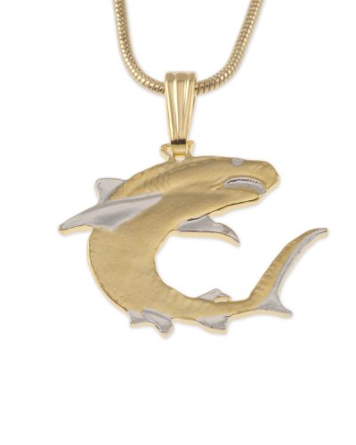 -. Title : Shark Pendant & Necklace, Solomon Islands 100 Dollar Coin Hand Cut