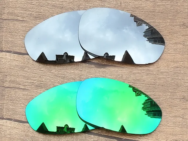 [해외] 크롬 실버 에메랄드 녹색 2 쌍 미러 편광 교체 렌즈 줄리엣 선글라스 프레임 100% UVA & UVB 보호