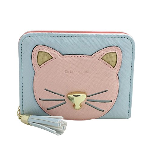 -. Title : Badiya Patchwork Cute Cat Face Tassel Zip-around Short/Long Wallets Clutch Purse