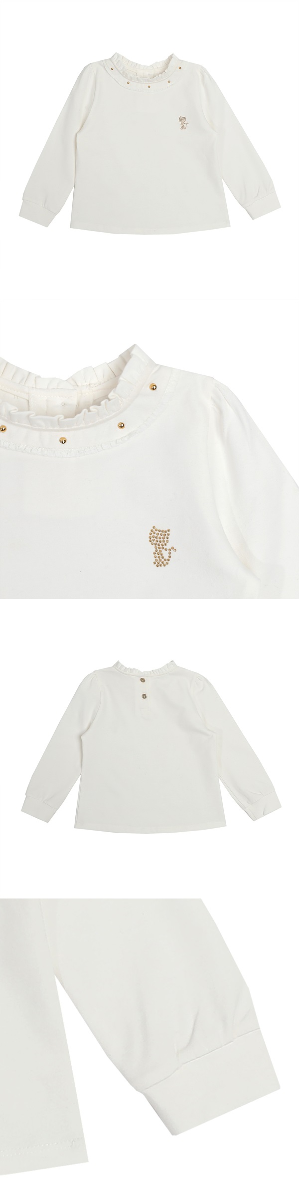 프릴 네크라인을 따라 들어간 핫피스 장식과