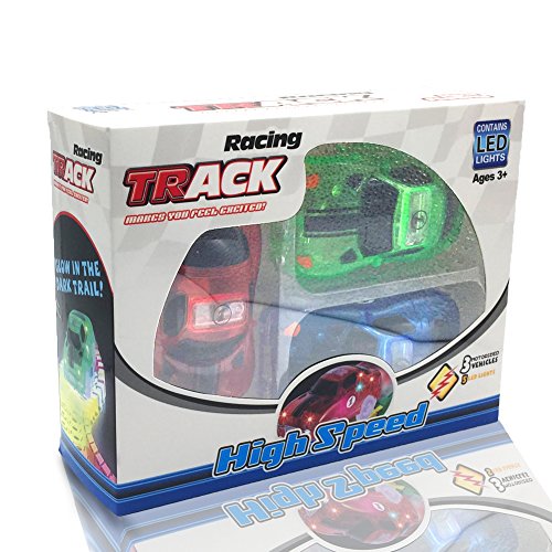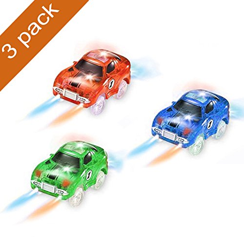 Track Cars Light Up Toy Car With 5 Flashing LED Lights Glow in the Dark Racing Track Accessories Compatible with Most Tracks(Pack of 3)