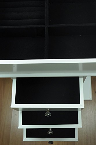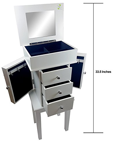 Uniware Elegant Wood Jewelry Cabinet with 4 Drawers, Mirror and Legs, White