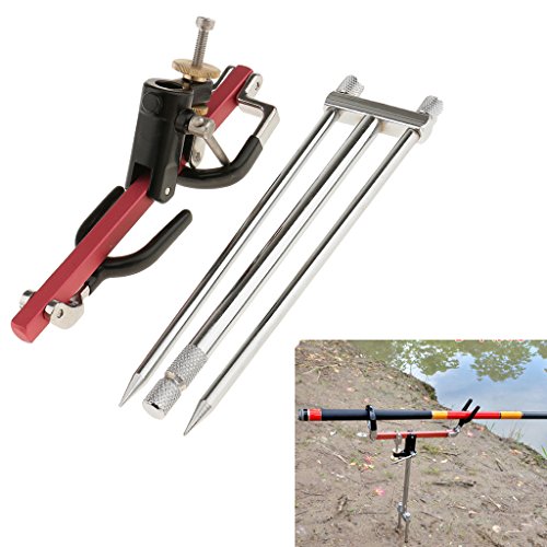 -. Feature : Stainless steel material, corrosion resistance, impact resistance. / Durable, foldable, adjustable and convenient to use and carry. / Angle can be adjusted easily, you can adjust different angle when fishing. / Two strong ground pins stay still on the ground. / Compact and simple design to hold your rod tightly.